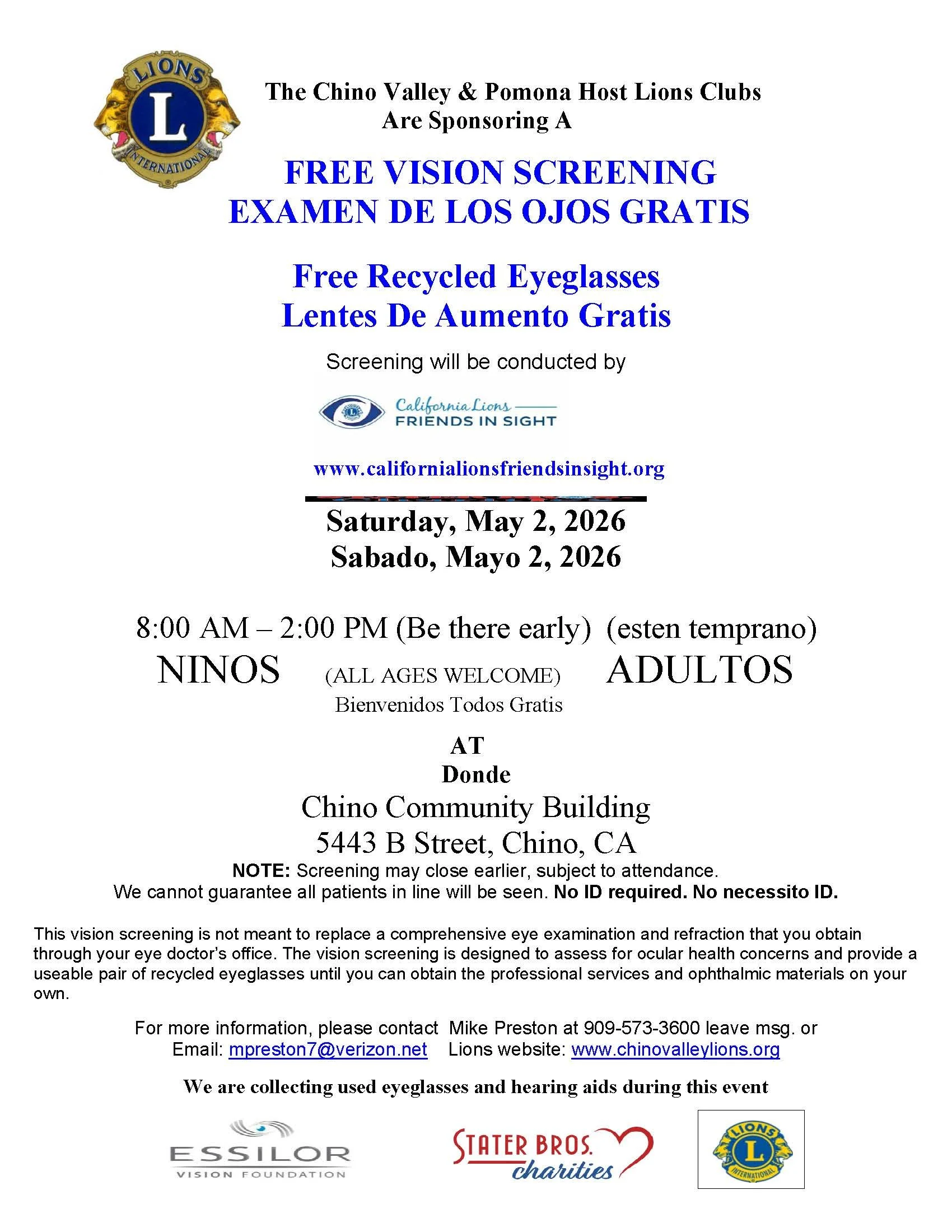Our club has been serving the City of Pomona and beyond for over 100 years. We are part of Lions Club International (LCI), which is the largest service organization in the world. Lions clubs provide many services within our communities, and on a global scale provide financial aid in disaster relief such as the recent earthquakes and floods that have occurred around the world.